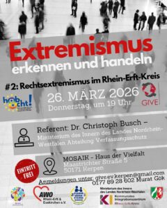 Nach dem sehr erhellenden und informativen Abend zum „Salafismus im Rhein-Erft-Kreis“ laden die Veranstaltenden zum „# 2 der Reihe Extremismus Erkennen und Handeln-Rechtsextremismus im Rhein-Erft-Kreis“ ein.